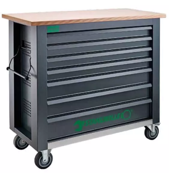 Wózek warsztatowy Stahlwille WB625 wyposażony jest w 7 przestronnych szuflad o różnej głębokości, dzięki czemu można w nich przechowywać narzędzia o zróżnicowanych rozmiarach. Zawiera 161 wysokiej jakości narzędzi, co zapewnia szeroki zakres zastosowań, od mechaniki samochodowej po prace stolarskie. Solidna konstrukcja oraz łożyska kulkowe w szufladach gwarantują długotrwałe i bezawaryjne użytkowanie. Warto zwrócić uwagę, że stół jest dość wysoki (blat na wys. 104cm) co ułatwia pracę i z powodzeniem może zastąpić meble w warsztacie.