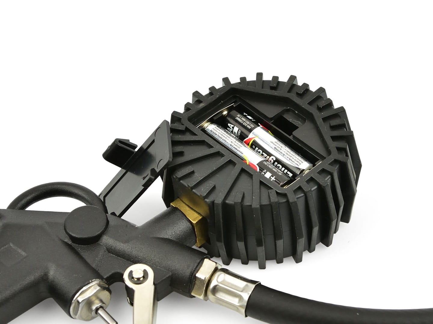 Profesjonalny pistolet pneumatyczny z manometrem LCD - do pompowania kół samochodów osobowych i ciężarowych. Wyposażony w elastyczny wężyk o długości 30 cm i duży czytelny manometr z wyświetlaczem LCD w gumowej osłonie chroniącej przed wstrząsami i uderzeniami. Skala pomiarowa w czterech jednostkach – Psi, Bar, kPa, Kg/cm2. Szybkozłącze 1/4" pozwala na szybkie podpięcie do kompresora.