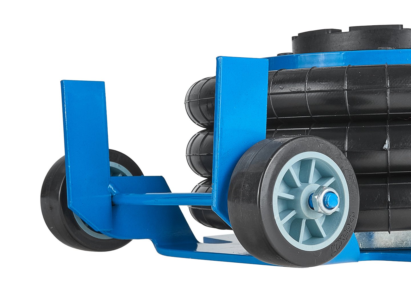 Mobilność: wyposażenie w dwa wytrzymałe koła jezdne umożliwia łatwe przemieszczanie podnośnika.