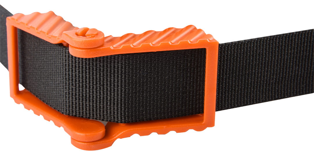 Ścisk pasowy (taśmowy) 4000x26x1,3 mm, z regulowanymi nakładkami z tworzywa sztucznego. Uchwyt dwukomponentowy