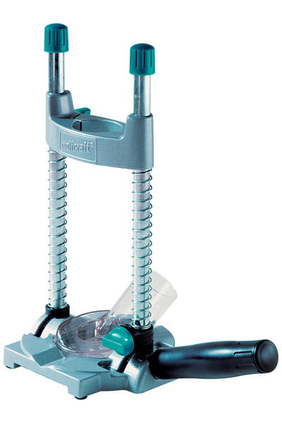 Praktyczna przystawka do wiertarki elektrycznej, do precyzyjnego wiercenia i wycinania otowr贸w w dowolnych miejscach - w 艣cianie, nad g艂ow膮, na skosach, w materia艂ach okr膮g艂ych, listwach i profilach.