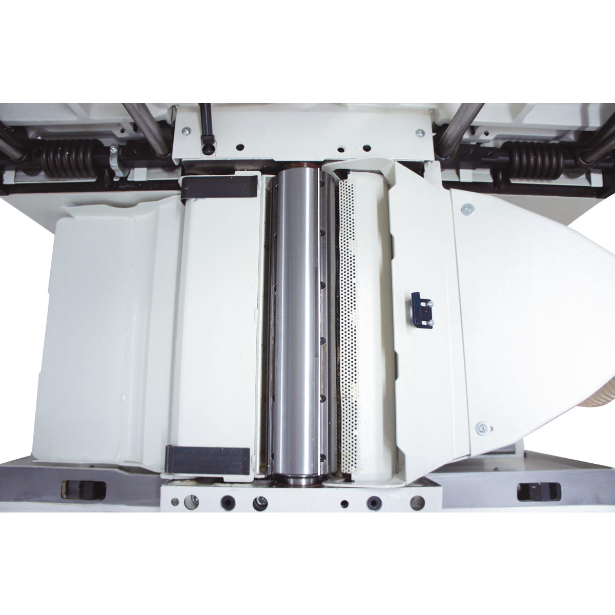 - Gumowy wałek odciągowy na wylocie grubościówki zapewnia równomierne odciąganie drewna