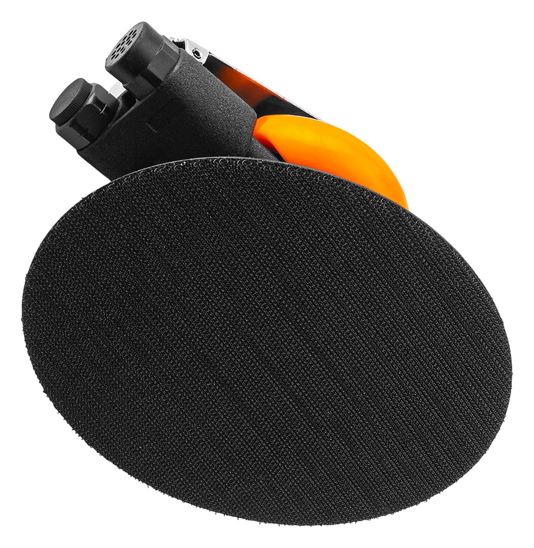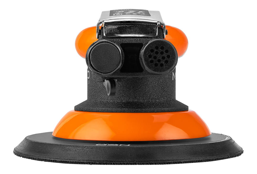 Szlifierka mimośrodowa pneumatyczna 150 mm, 10 000 obr.-1, promień oscylacji 5 mm, ciśnienie robocze 6.3 - 7.0 bar, średni pobór 45 l/min., mocowanie papieru na rzep, waga 1.0 kg, CE