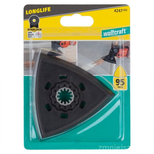 Trójkątny dysk szlifierski (z sytemem mocowania na rzep), SL Wolfcraft, wymiar boku: 95mm. Idealny do pracy w narożnikach- Starlock WF4247000